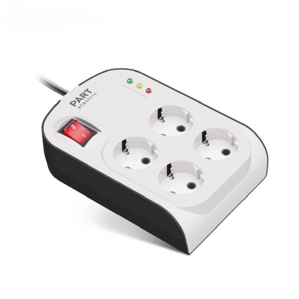 محافظ ولتاژ 4 خانه ارت دار با قفل کودک پارت الکتریک مدل پارت 8791 با مغزی پلی آمید و با طول کابل 1.8 متری به بازار عرضه شده است. از این محصول به عنوان محافظ ولتاژ لوازم صوتی و تصویری مانند تلویزیون، دستگاههای پخش، لپتاپ، کامپیوتر و… میتوان استفاده کرد.